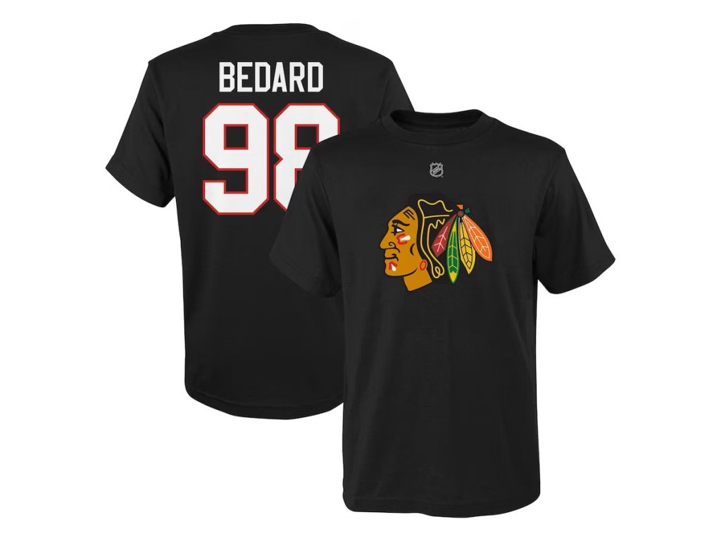 Dětské tričko Connor Bedard #98 Chicago Blackhawks NHL Player Name & Number Black