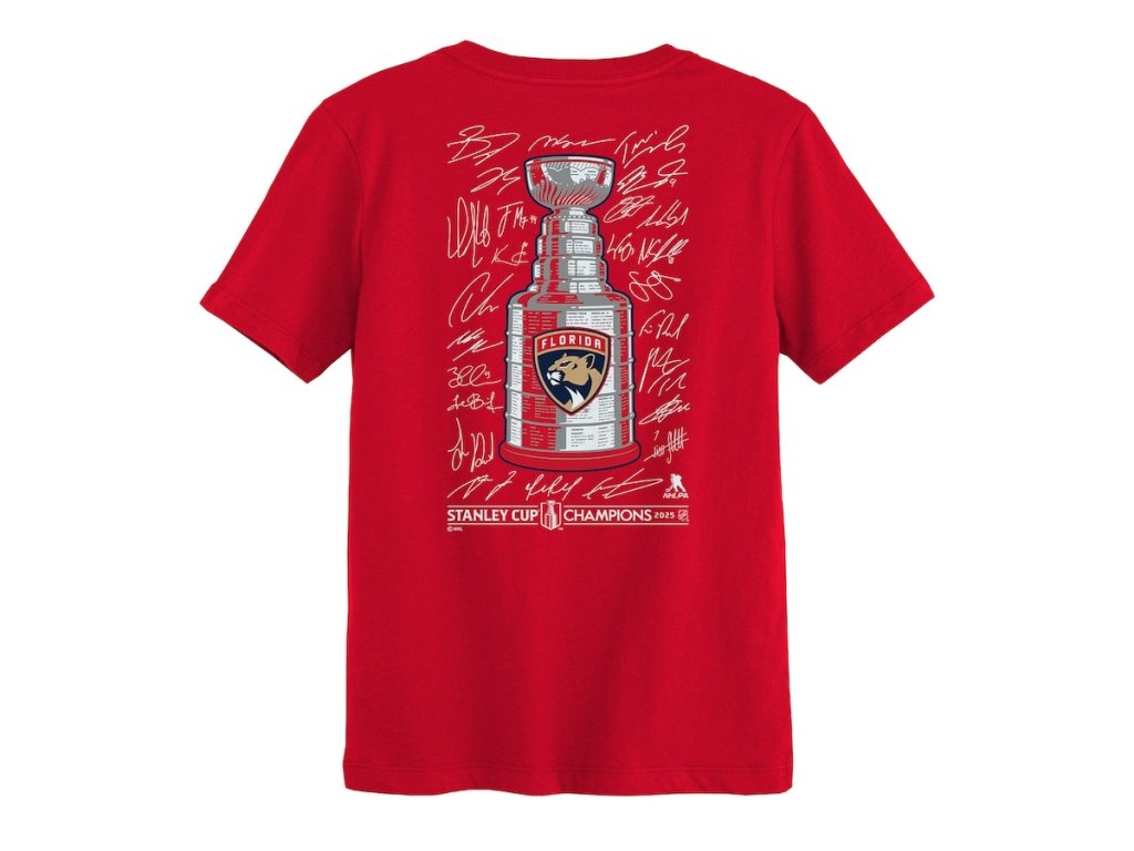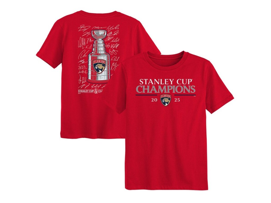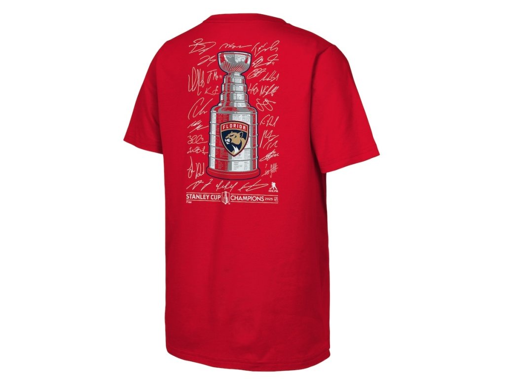 Dětské tričko Florida Panthers NHL 2025 Stanley Cup Champions Signature Roster T-Shirt - Red