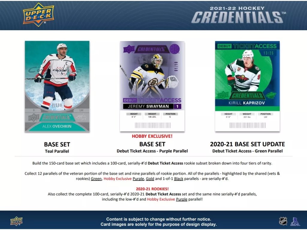 Hokejové Karty NHL 2021-22 Upper Deck Credentials Hobby BoxDodatočné parametre