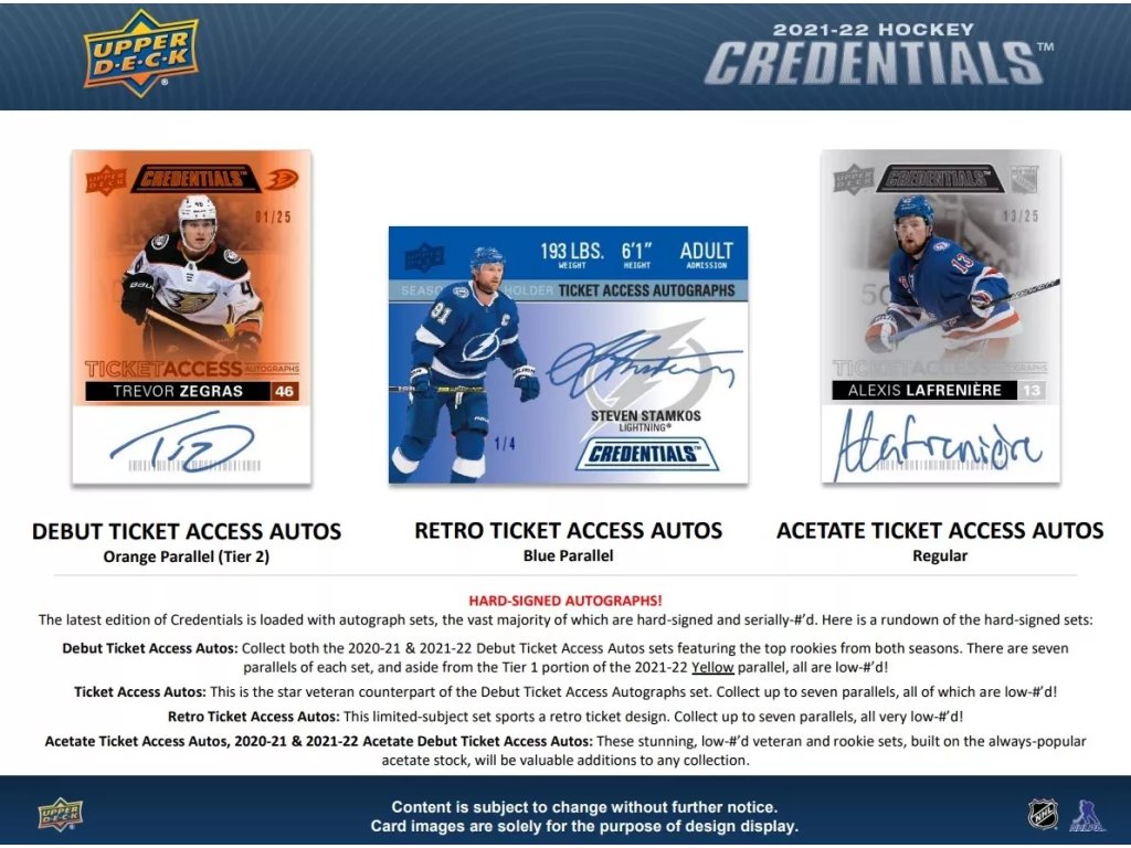 Hokejové Karty NHL 2021-22 Upper Deck Credentials Hobby Box