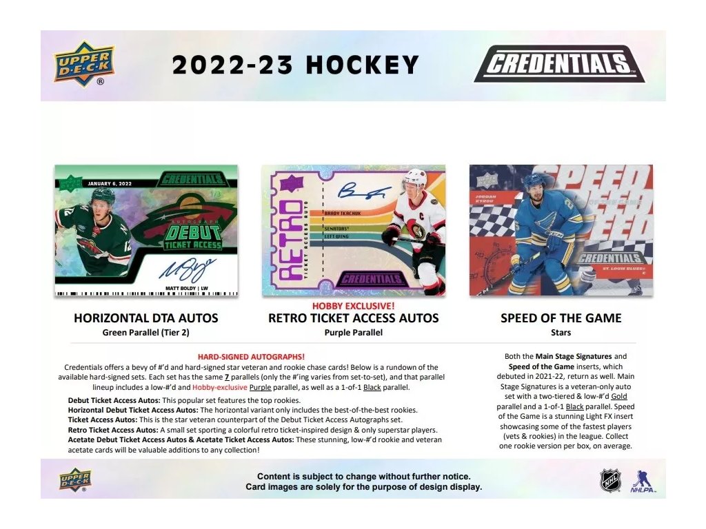 Po debute v roku 19-20 a pokračovanie v sezóne 21-22 sa o našu priazeň bude uchádzať tretí ročník série Credentials! Tento rok doplnená o množstvo noviniek a hlavne s lepším plnením. V sérii spústa HARD SIGNED (priamo na karte) podpísaných kariet!