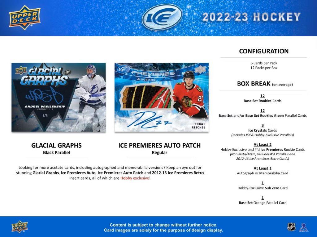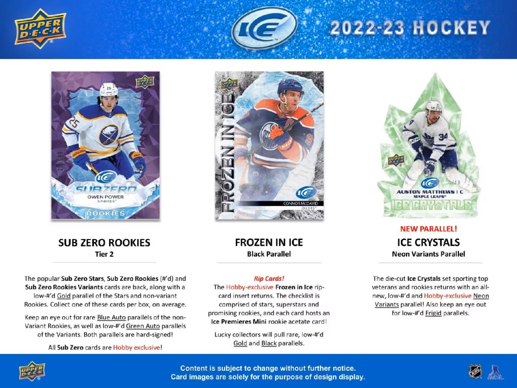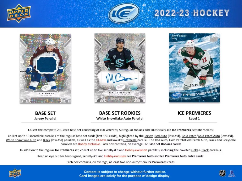 Každý box obsahuje minimálne 2 insertné Rookie karty Ice Premieres.