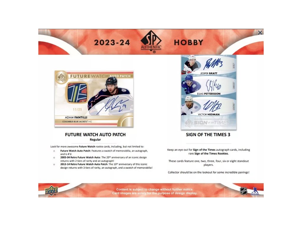 Hokejové Karty NHL 2023-24 Upper Deck SP Authentic Hobby Balíček