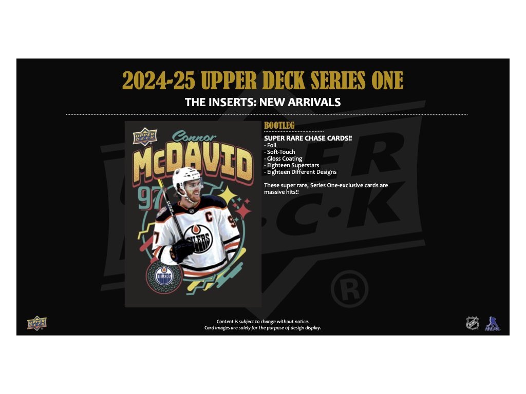 - Bootleg (super vzácne "chase" karty!) - fólia, soft-tou; Osemnásť superhviezd (vr. top nováčikov). Osemnásť rôznych designov. Každá karta z tejto raritnej sady dostupnej iba v Series 1 bude obrovským prínosom každej zbierky!
