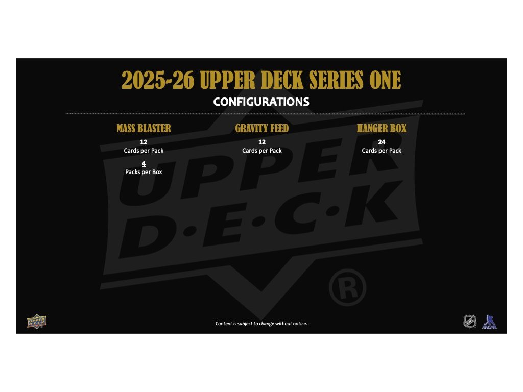 - klasická karta UD Encore sa vracia! Series 1 prináša prvých 100 kariet tejto série s LTFX (fólia so špeciálnym svetelným efektom). Sú zahrnutí aspoň dvaja hráči na tím.