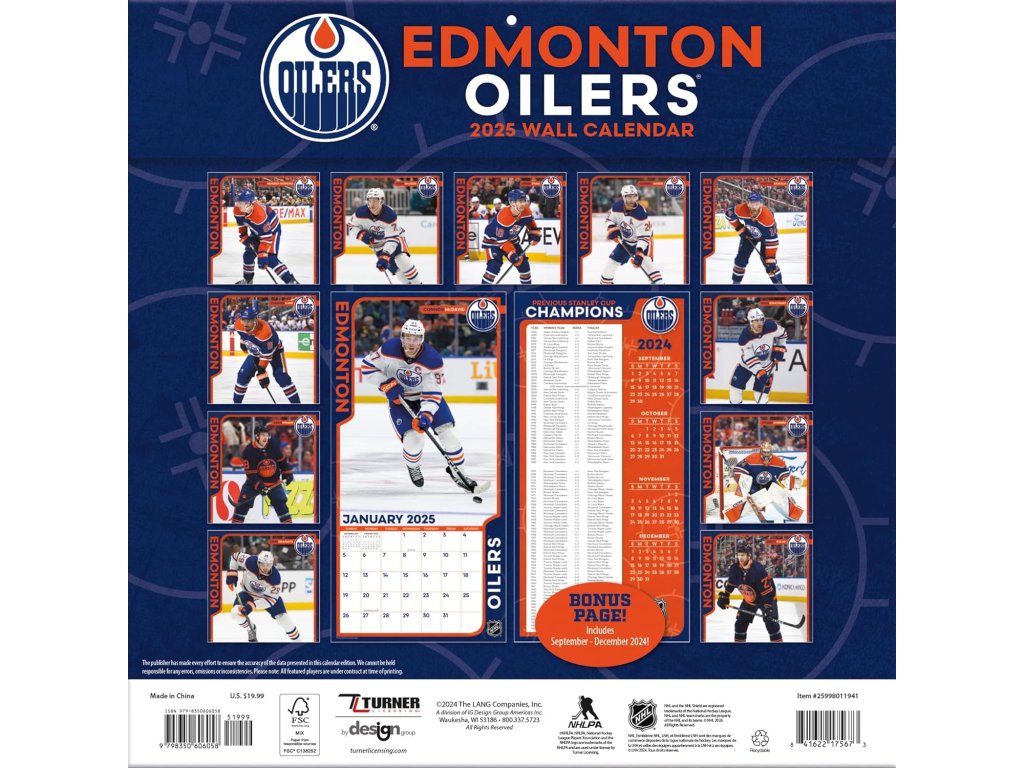 Kalendár Edmonton Oilers 2025 Wall CalendarDodatočné parametre