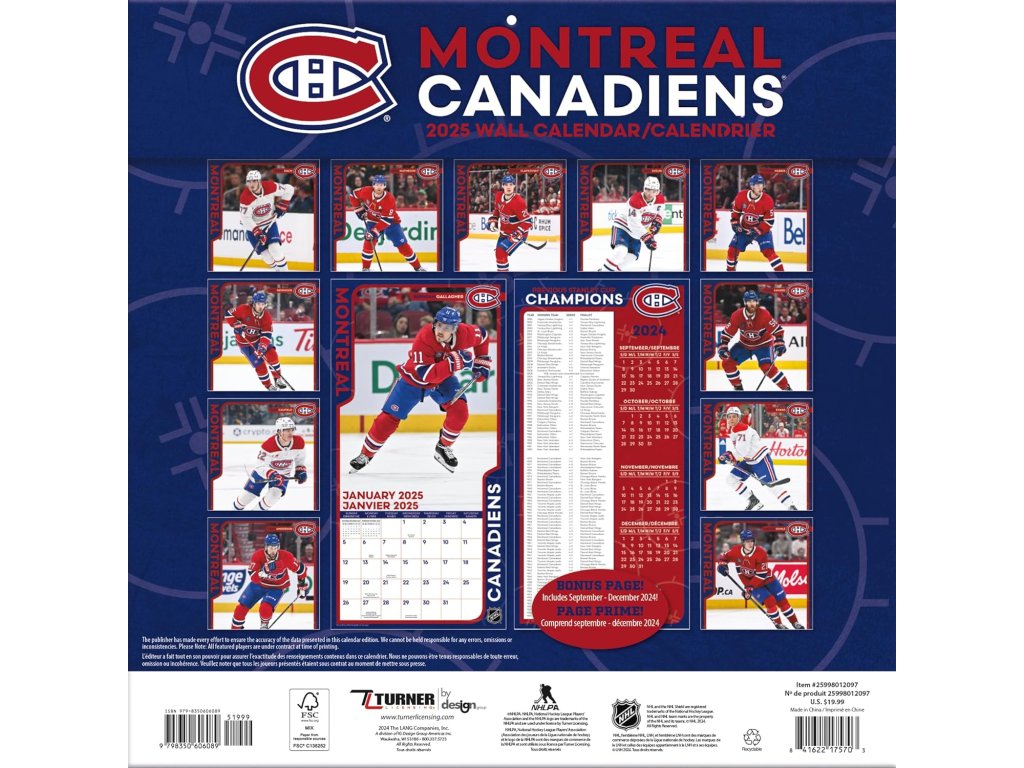 Kalendář Montreal Canadiens NHL 2025 Wall Calendar