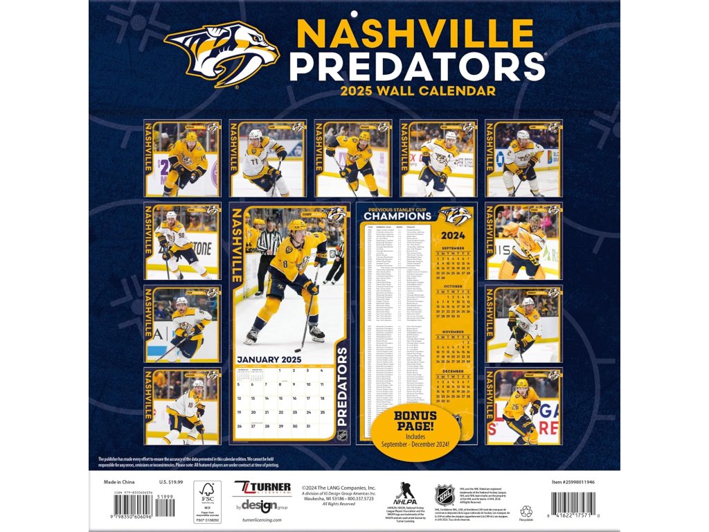 Kalendář Nashville Predators NHL 2025 Wall Calendar