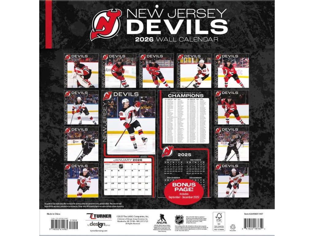 Kalendář New Jersey Devils NHL 2026 Wall Calendar