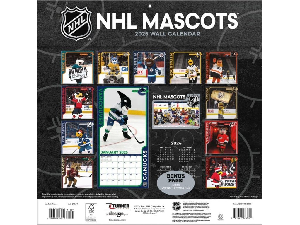 Kalendář NHL Mascots 2025 Wall Calendar