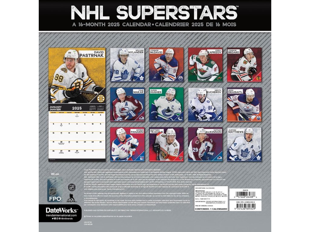 Kalendář NHL Superstars 2025 Wall Calendar
