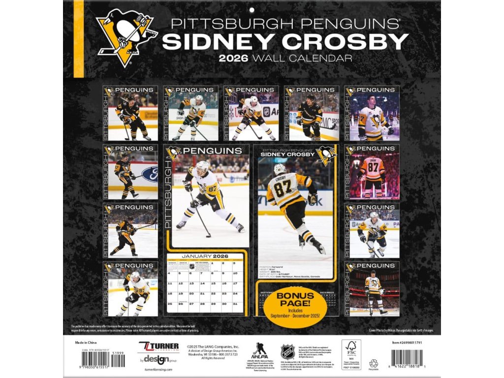 Kalendár Pittsburgh Penguins NHL Sidney Crosby #87 2026 Wall CalendarDodatočné parametre
