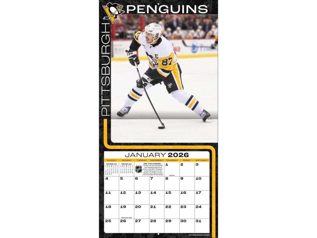 Kalendář Pittsburgh Penguins NHL Sidney Crosby #87 2026 Wall Calendar