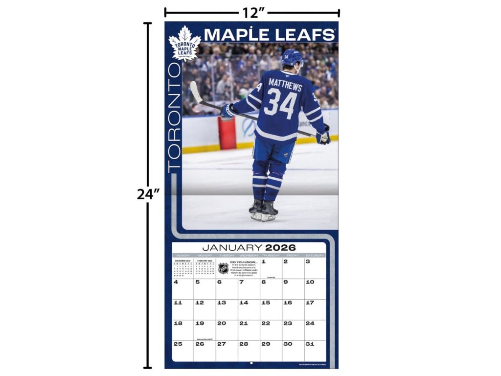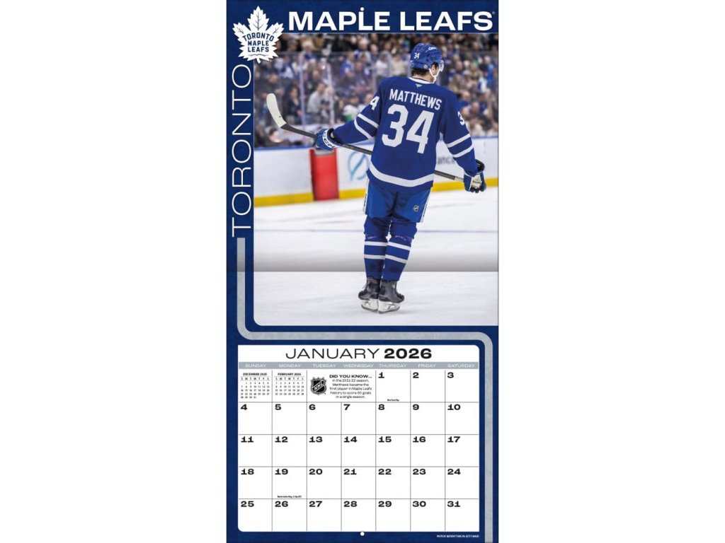 Kalendár Toronto Maple Leafs NHL Auston Matthews #34 2026 Wall CalendarDodatočné parametre