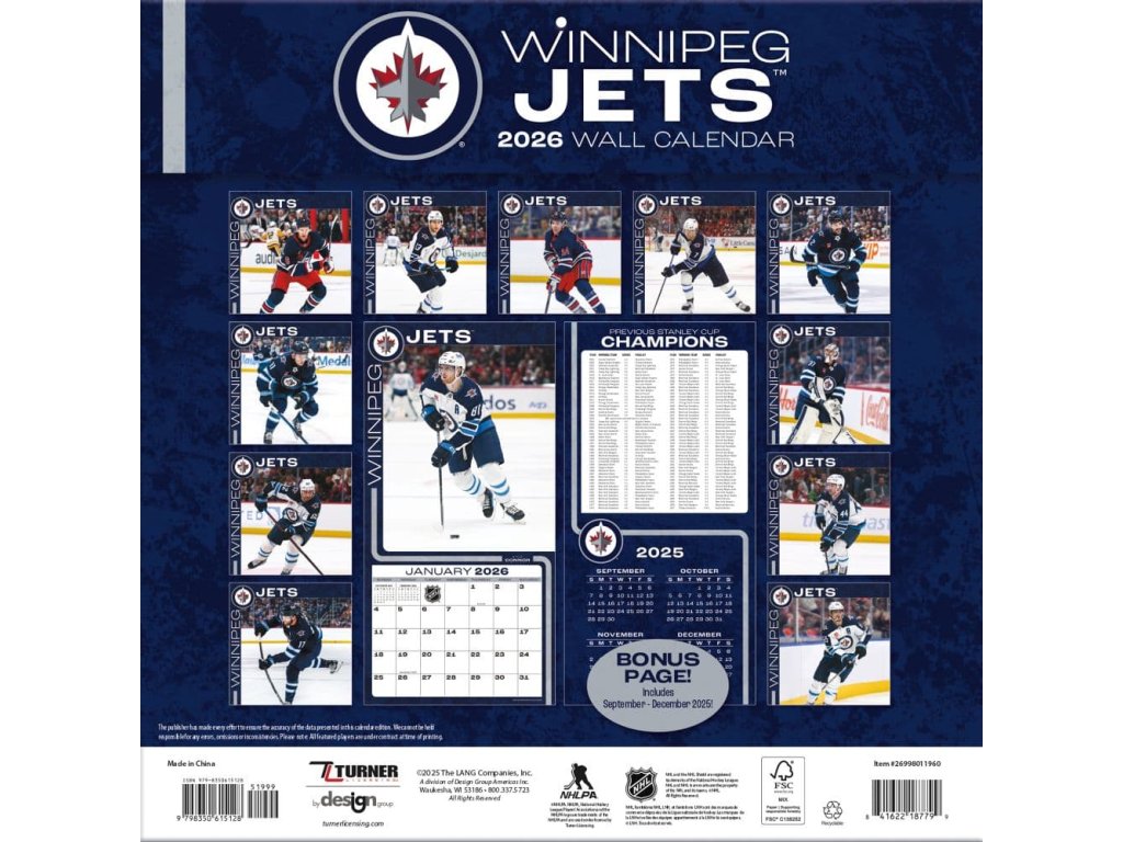 Kalendář Winnipeg Jets NHL 2026 Wall Calendar