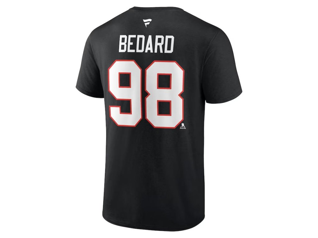 Pánské tričko Connor Bedard #98 Chicago Blackhawks NHL Draft 2023 Stack Logo Name & Number Black