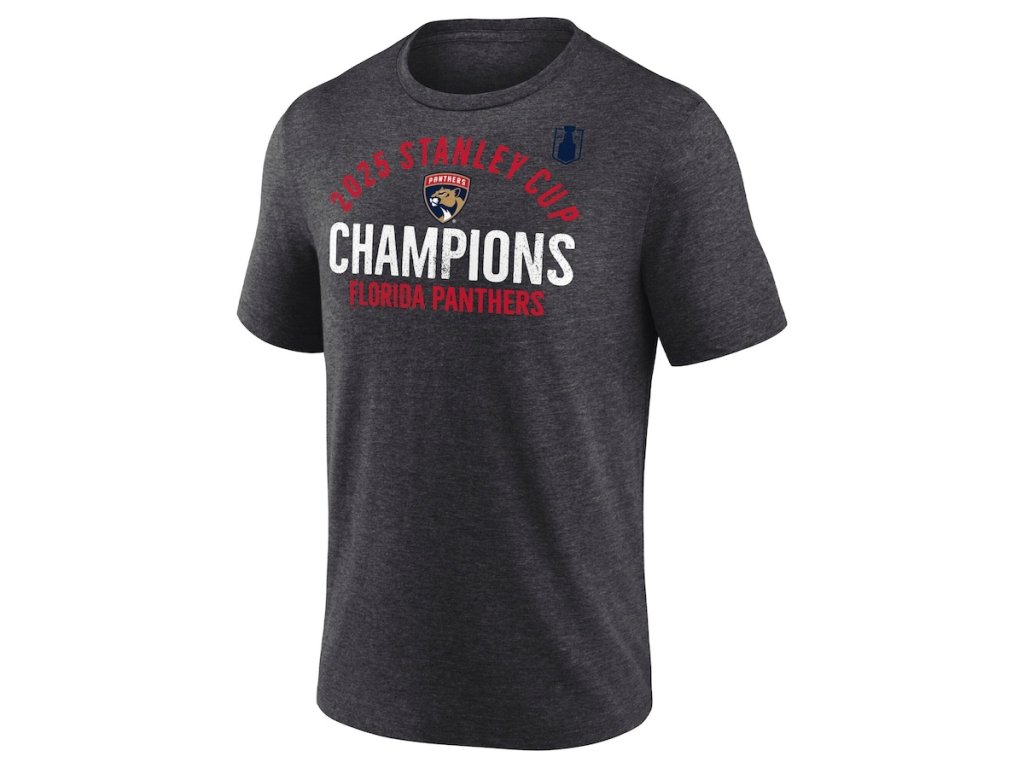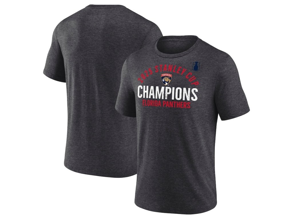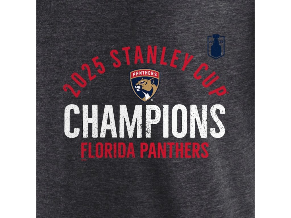 Pánské tričko Florida Panthers NHL 2025 Stanley Cup Champions Rush Tri-Blend T-Shirt - Heather Charcoal